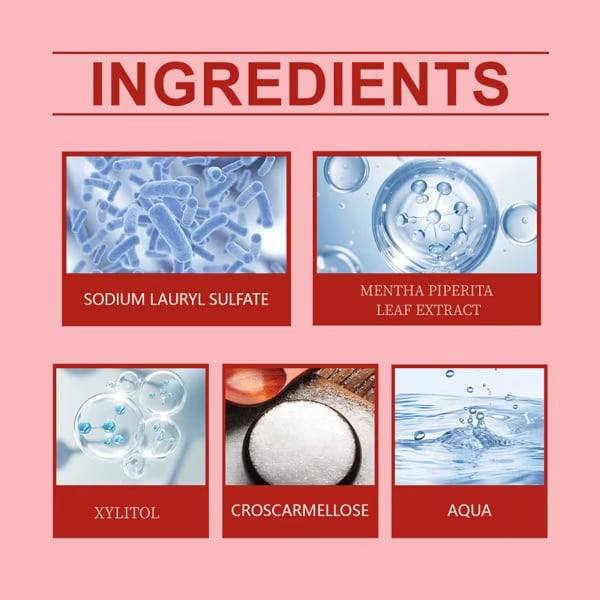 Benefits: Whitens, Fights Bad Breath, Strengthens Enamel, Soothes Gums.