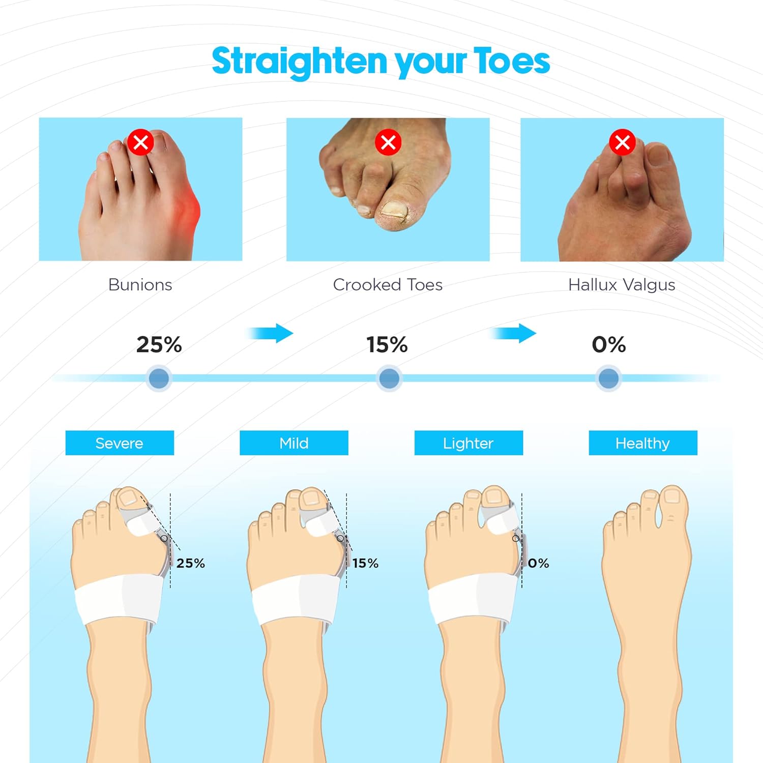 ✔ IMMEDIATE PAIN & PRESSURE RELIEF The brace features a soft, gel-padded cushion that sits directly over your bunion. This instantly protects the sensitive joint from the friction and pressure of your shoes, relieving pain while you walk or sleep.Bunion Corrector for Men & Women]