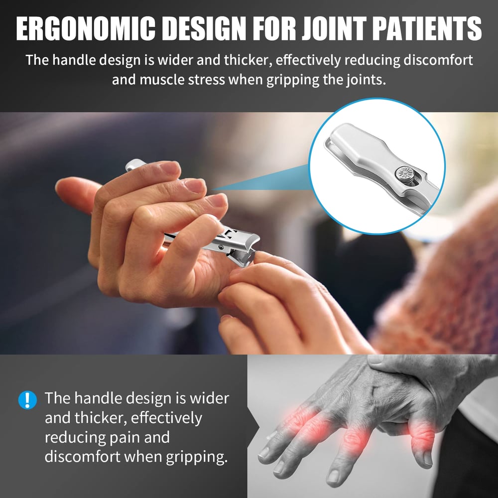 A CLEAN, 'NO-SPLASH' DESIGN The clipper features a built-in nails catcher that automatically collects clippings as you cut. This prevents nail scraps from splashing all over your room, keeping your space clean and hygienic.