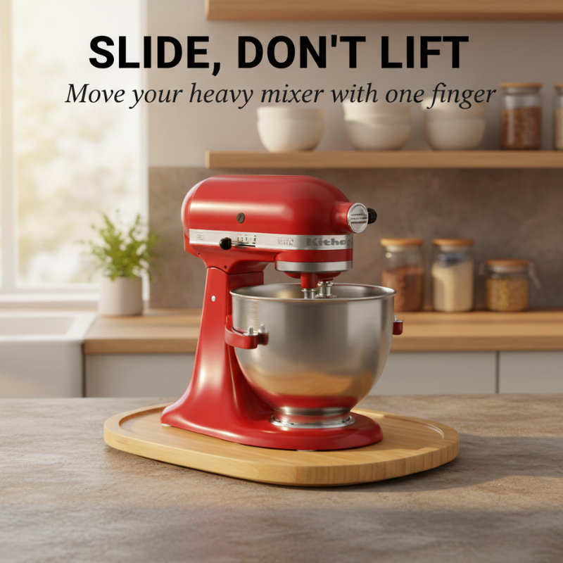Your stand mixer weighs 25 pounds. Every time you want to bake, you brace yourself, grip the sides, and heave it across the counter — hoping you don't scratch the granite or strain your back. That's because no one ever told you there's a handmade bamboo tray that lets your mixer glide to exactly where you need it — no lifting, no straining, no effort at all.