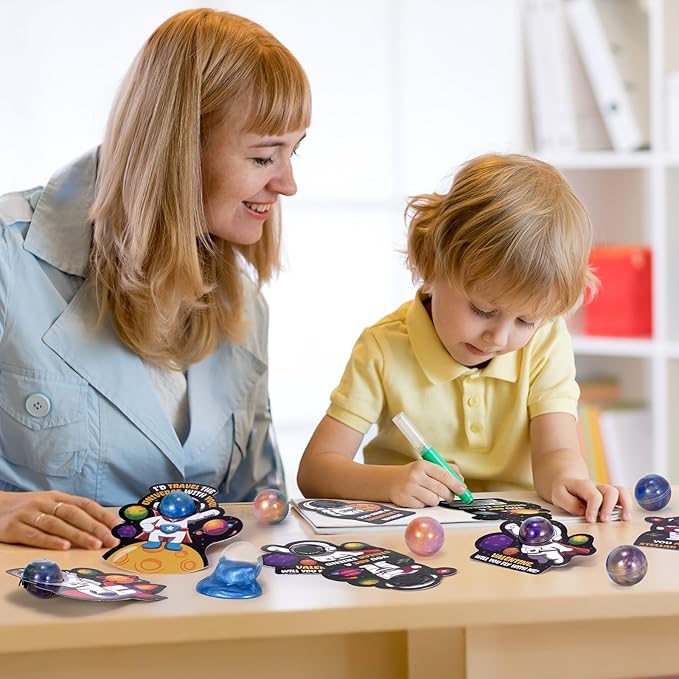 • Are the Valentine cards included? Yes! Each Galaxy Slime comes with a dedicated Valentine’s card, making it a complete "ready-to-gift" solution for school parties.