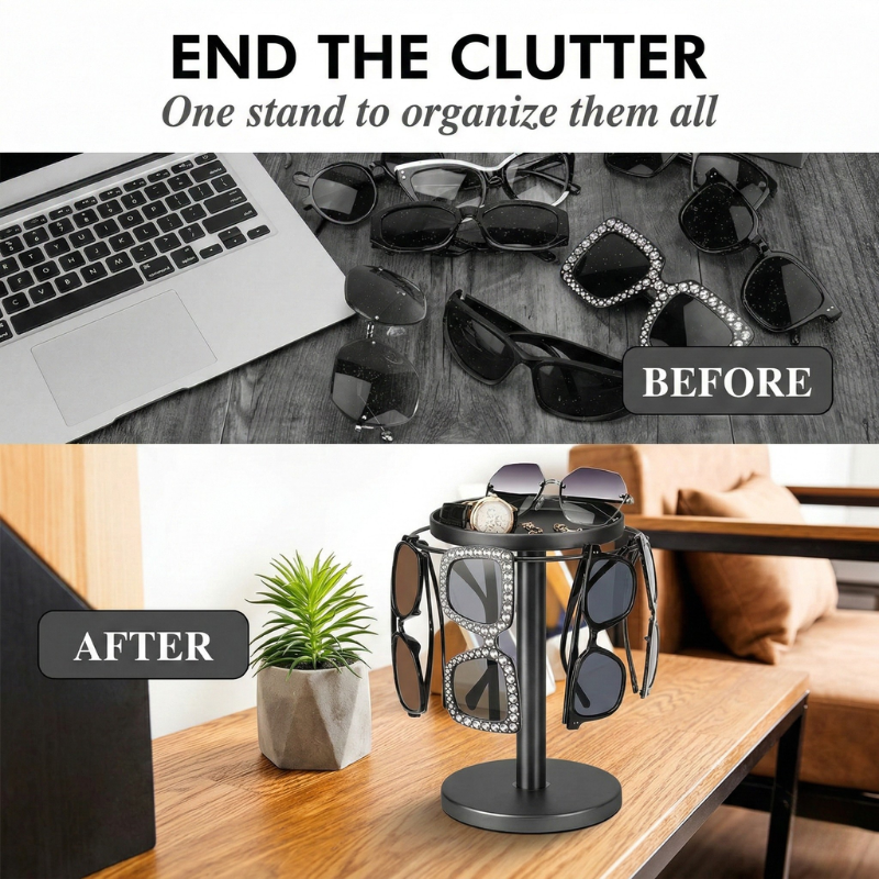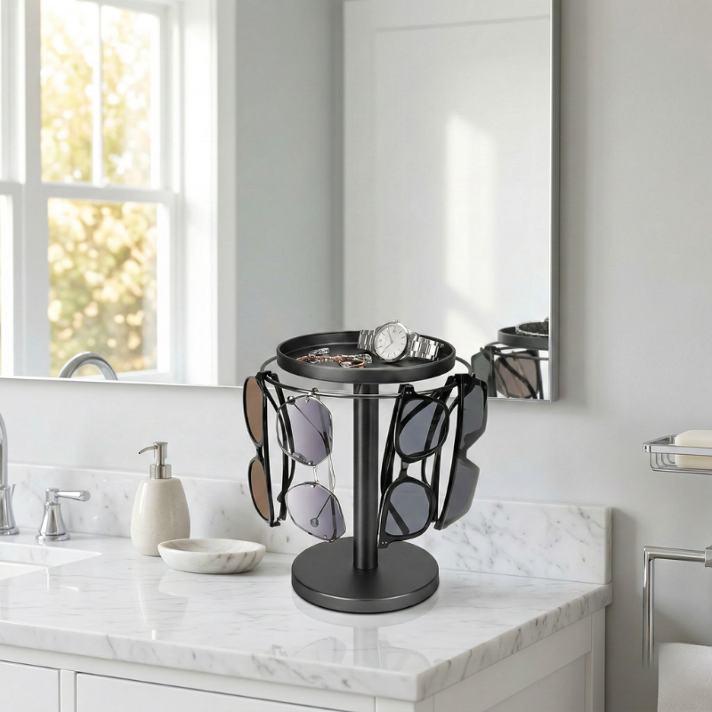 That small frustration you feel every morning — scanning your dresser for the right pair, wondering where your sunglasses disappeared to — it adds up. And it makes your space look more cluttered than it should.