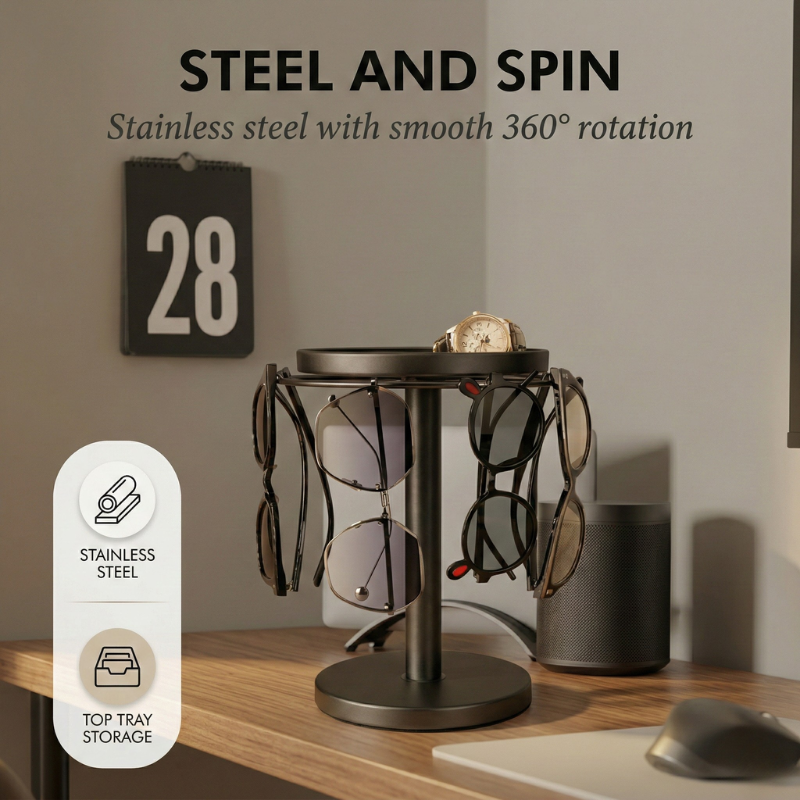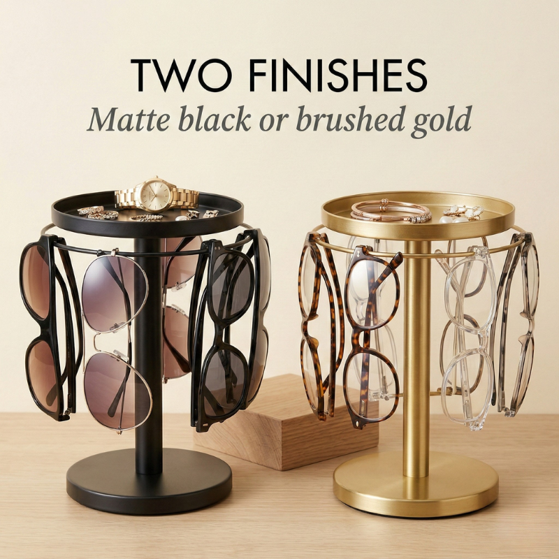 ✔ STOP LOSING GLASSES IN THE CLUTTER - The Pivôt™ holds up to 12 pairs on sturdy rotating hooks, so every pair is visible, accessible, and off your counter in seconds. One spin shows you everything you own.