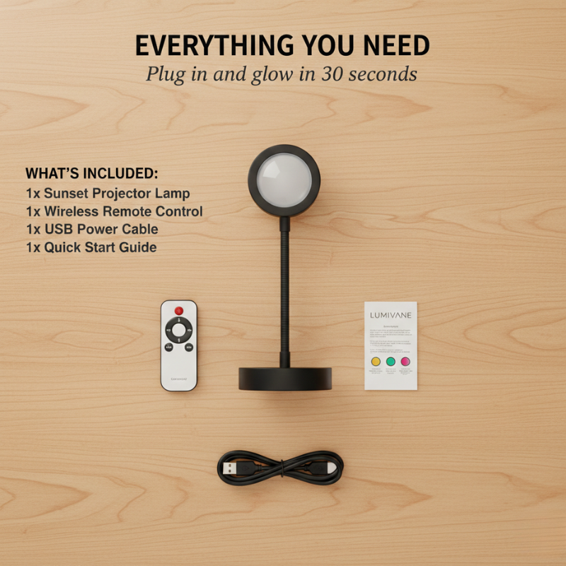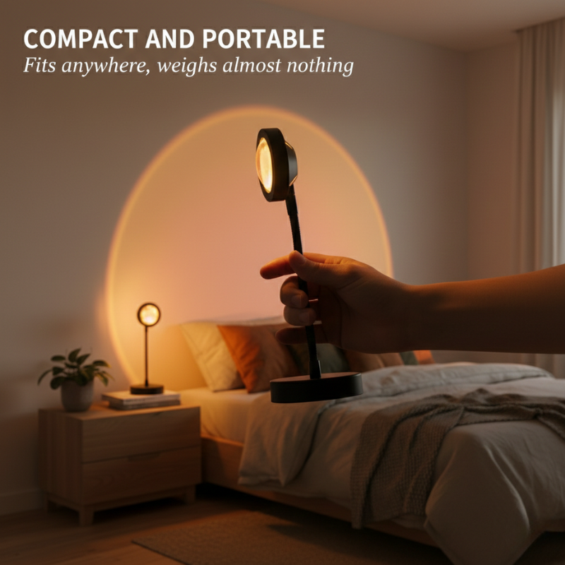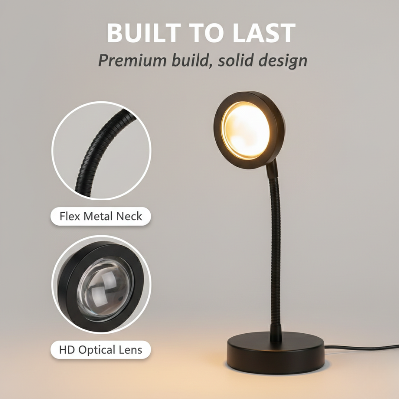 ✔ AIM THE LIGHT EXACTLY WHERE YOU WANT IT - The 180° adjustable gooseneck head tilts and rotates to project the sunset glow on any wall, ceiling, or corner — giving you full control over the angle, spread, and focal point of the projection for any setup.