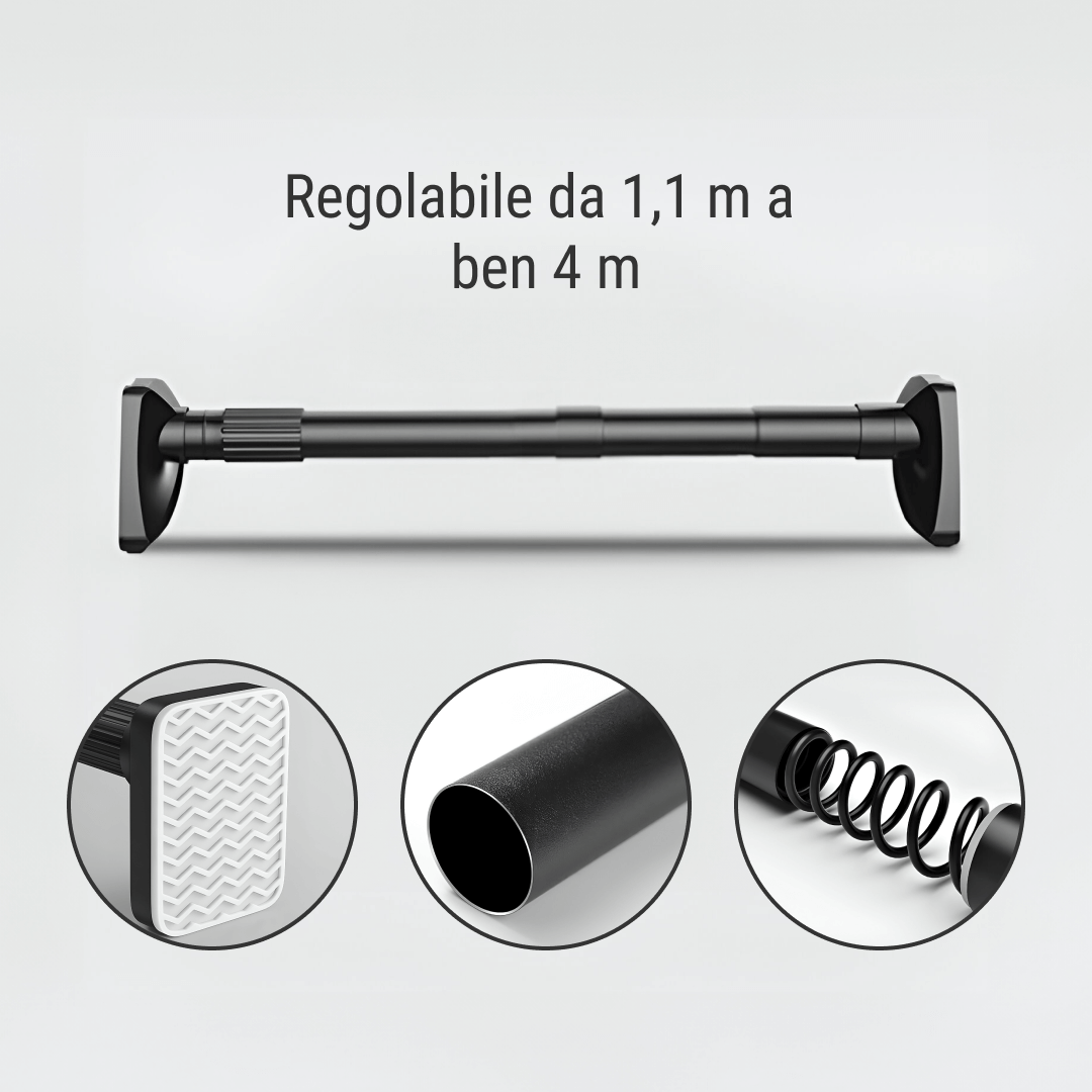 No more one-size-fits-some. TitanHold expands from a compact 1.1 meters to a spacious 4 meters, offering a perfect fit for closets, doorways, windows, or creative storage setups.