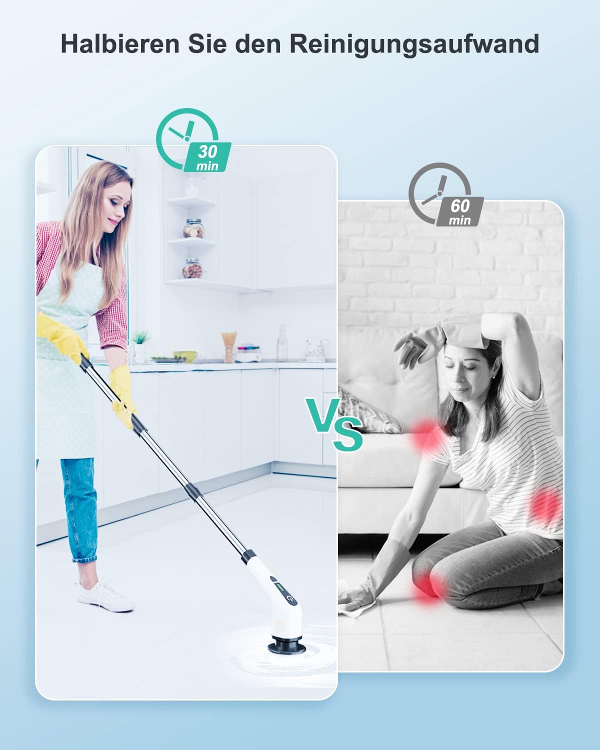 Solution: CleanTastic's powerful electric motor does the hard work for you. Its high-speed spinning action effortlessly removes dirt and grime, eliminating the need for manual scrubbing and preventing strain on your body.