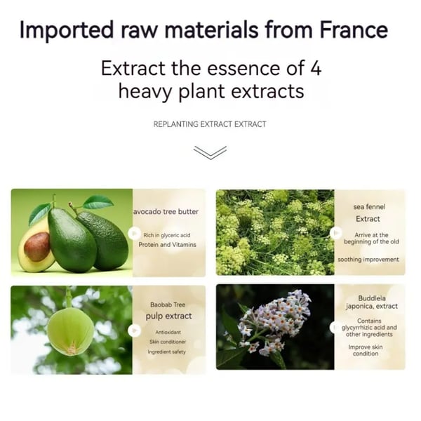 Black orchid essence, Vitamin C and E from red pomegranate, and 5-year-old Japanese ginseng antioxidants.