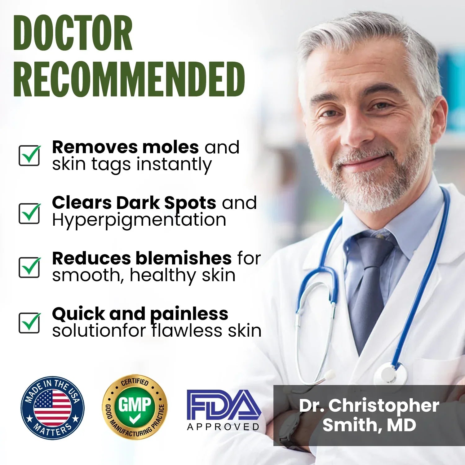 Experience noticeable improvement in as little as a few days, with complete fading of spots, moles, and skin tags over time without irritation or scarring.