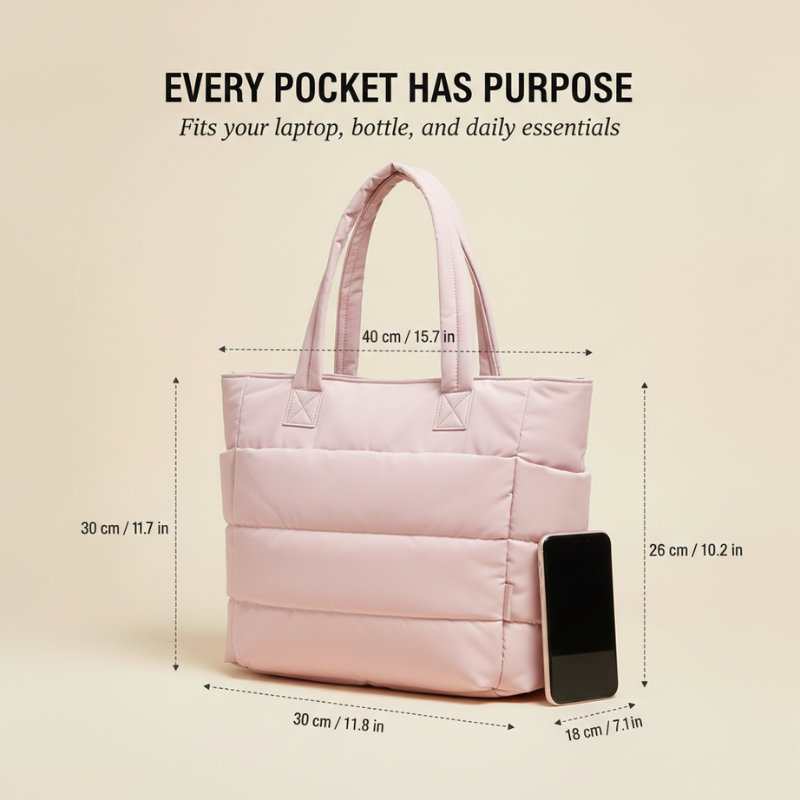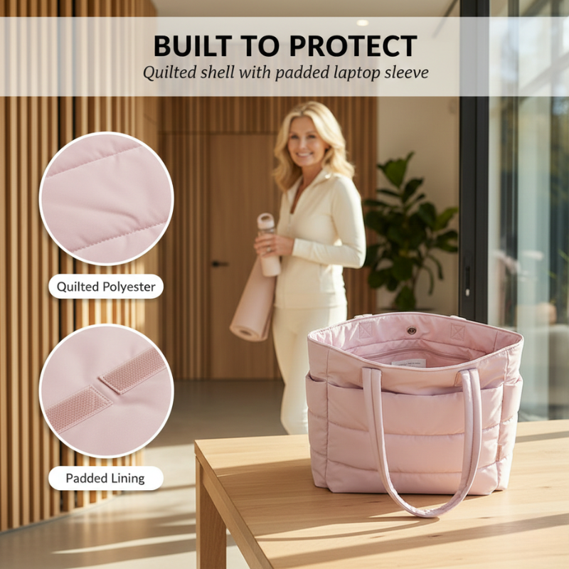 Plumaire™ – Ultra-Light Quilted Puffer Tote Bag with Laptop Compartment + 50% OFF