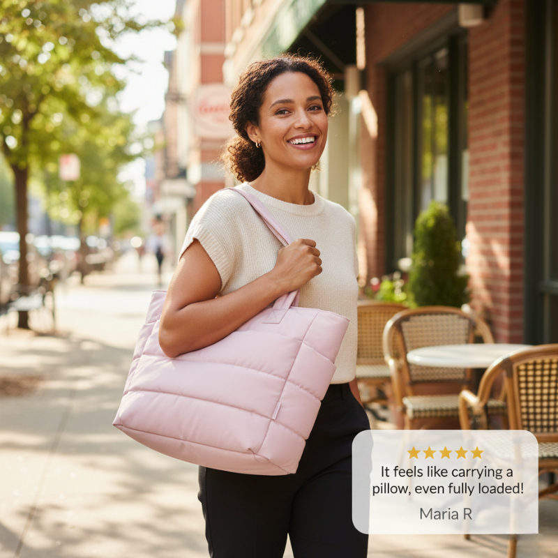 ✔ END THE SHOULDER ACHE FROM HEAVY TOTES THAT WEIGH YOU DOWN - At just 0.99 lbs, the quilted puffer construction distributes weight evenly across soft, stay-put shoulder straps — reviewers say it feels like carrying a pillow, even when it's fully loaded.