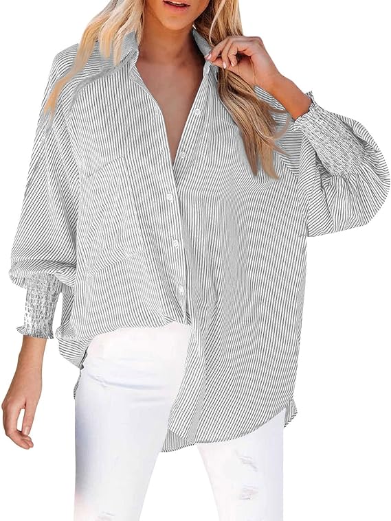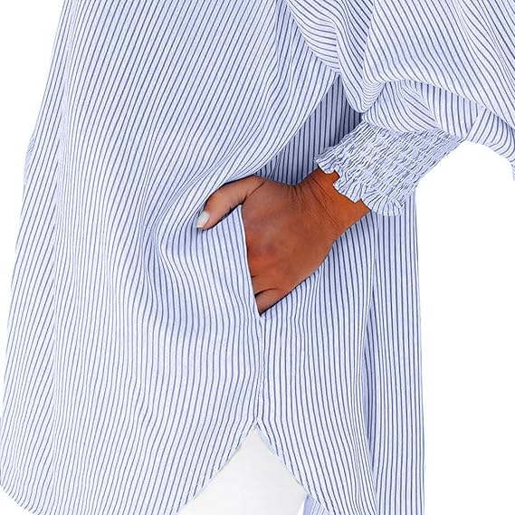 A STATEMENT-MAKING DETAIL -  The long, shirred cuff is a unique, eye-catching design element. It adds a touch of sophisticated, feminine detail that elevates the shirt from a simple basic to a true fashion piece.