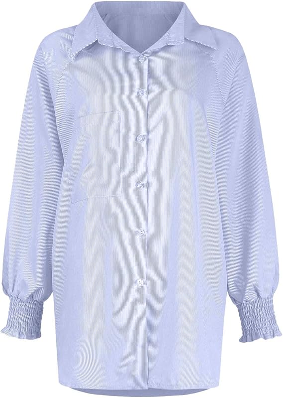• Design: Oversized Fit with Smocked Long Sleeve Cuffs and V-Neck Collar.