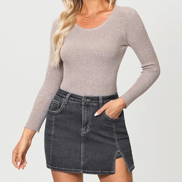 ✔ A FLATTERING, 90s-INSPIRED LOOK - The high-waisted design and flirty side slit create a chic, vintage-inspired silhouette that flatters your shape and elongates your legs, pairing perfectly with crop tops or tucked-in blouses.